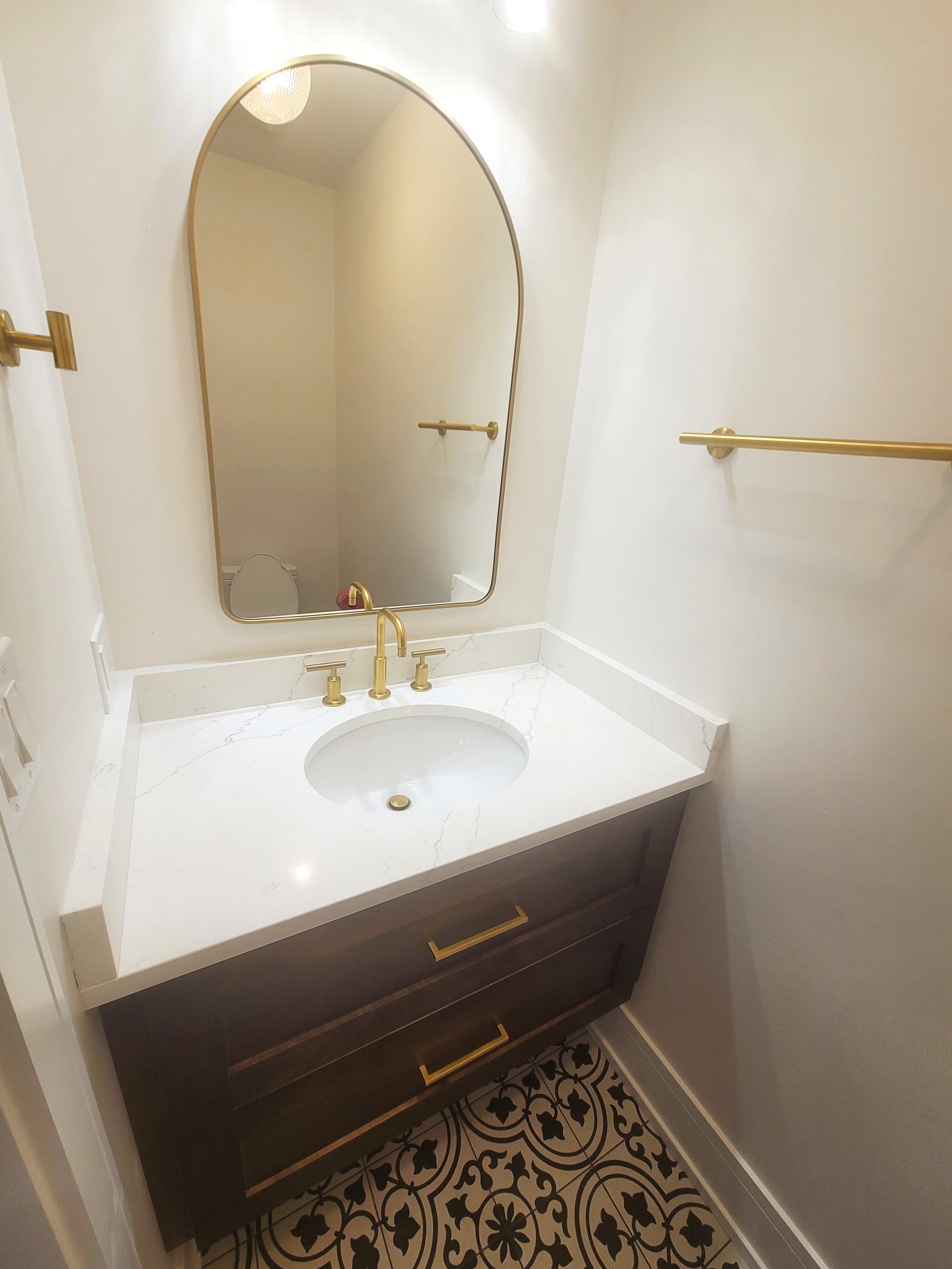Matte black and brushed gold hardware for contrast and style